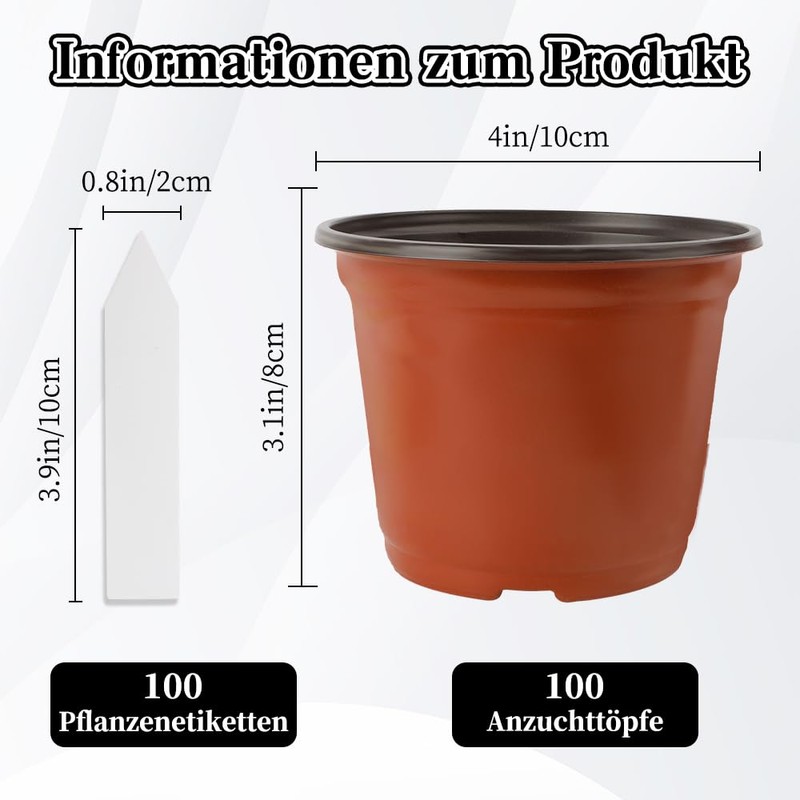 • Blumentöpfe Set:Sie erhalten 100 Kunststoff-Pflanztöpfe + 100 Pflanzenetiketten + 1 Stift. Dies ist ein perfektes Zubehörset für landwirtschaftliche Pflanzen. Ideal für die Bepflanzung Anfänger, groß angelegte Pflanzung braucht, Garten-Zubehör, Gewächshaus-Zubehör, Landwirtschaft Zubehör.