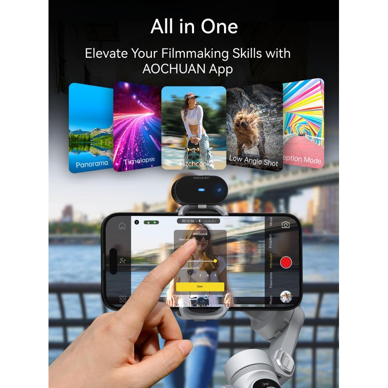 - Compatible with Your Phone: The gimbal stabilizer, Smart X pro, is compatible with all iPhone and Android phones under 7 inches. It weighs 0.62 pounds and has dimensions of 6.3 inches in length, 3.5 inches in width, and 0.4 inches in thickness. To check if our APP "AOCHUAN" is available on your phone, you can download it from the Apple or Google store. With the APP, you can explore various functions such as Hitchcock, Inception, slow motion, time lapse, panorama, and more