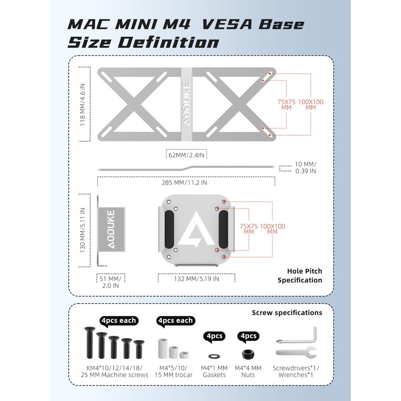 - AODUKE Aluminum Alloy Mac Mini M4 Under table bracket, 2024 Mac Mini M4 Pro Wall Mount Stand, Hanging rack Compatible with VESA Hole Monitor Mount