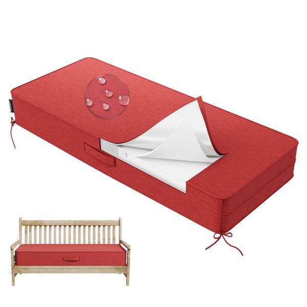AOFEITE Outdoor Olefin Water-Resistant Bench Cushion, Weather and Fade Resistant 42”x 18”x 5” Patio Furniture Thickened Seat Pad with Handle and Adjustable Straps Ideal for Lawn, Garden, Red