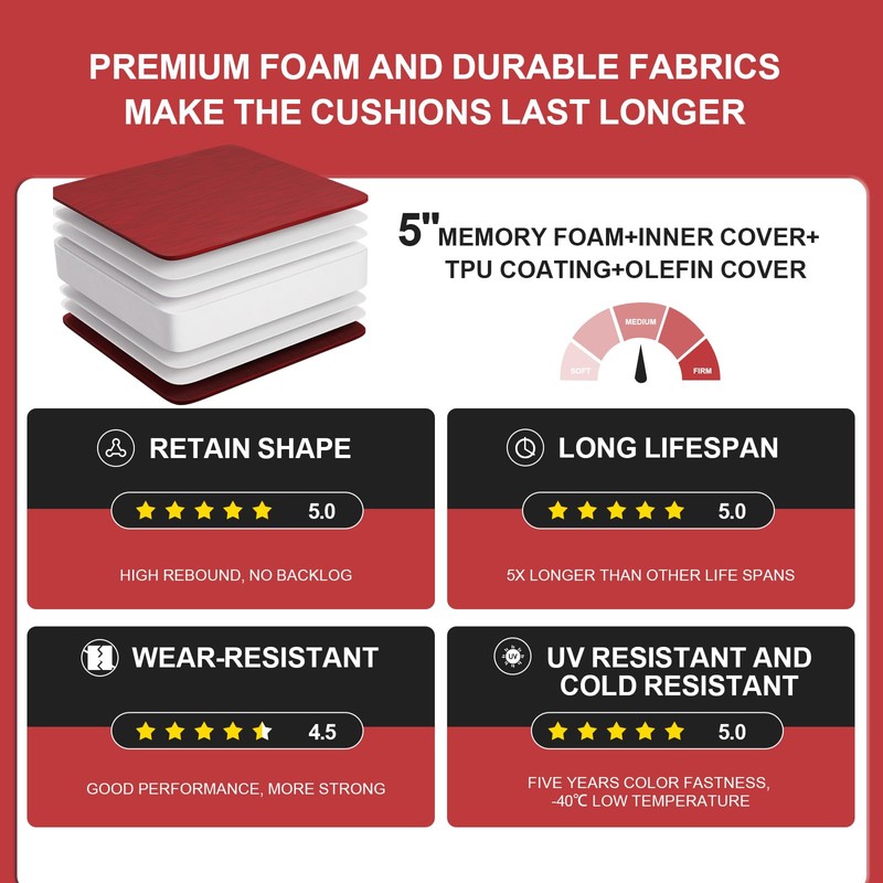 - Anti-Fading Olefin Fabric: The bench seat cushion for patio furniture cover are made of special anti-ultraviolet Olefin fabric, which is sun resistant and cold resistant, with 4.5 color fastness, 2000 hours of exposure to the sun will not fade, there is no need to worry about fading.