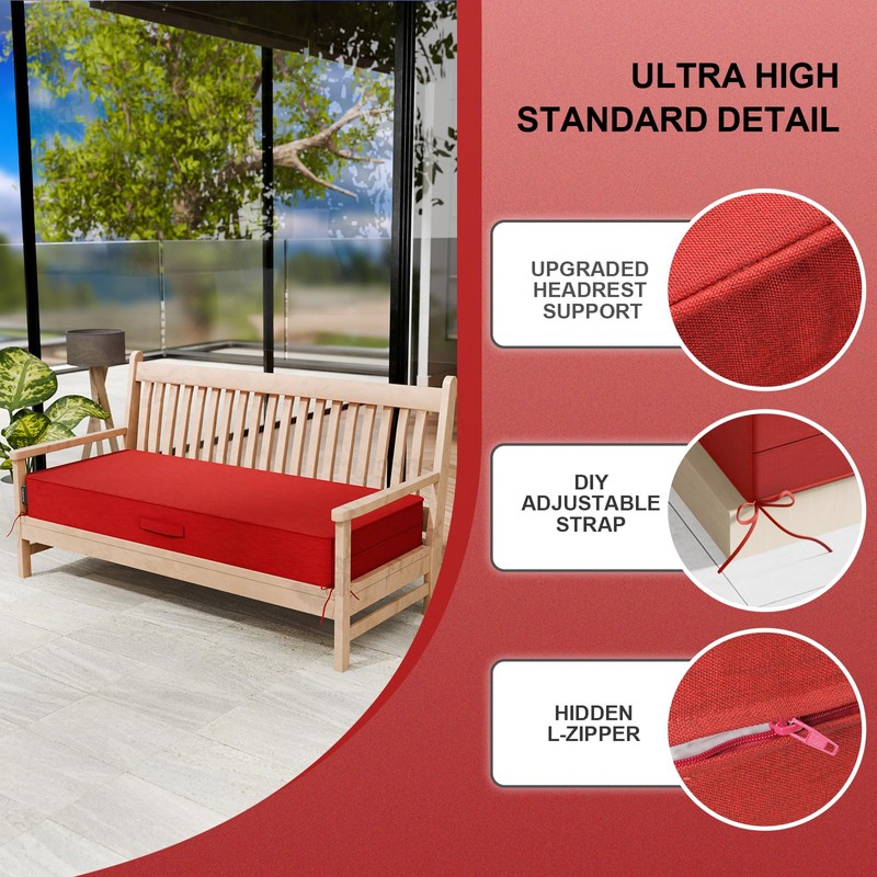 - High-Grade Triple Waterproof: The outdoor patio bench cushion adopt special outdoor waterproof fabric Olefin, add waterproof TPU coating on the reverse side, additional with waterproof inner cover, really achieve triple waterproof.