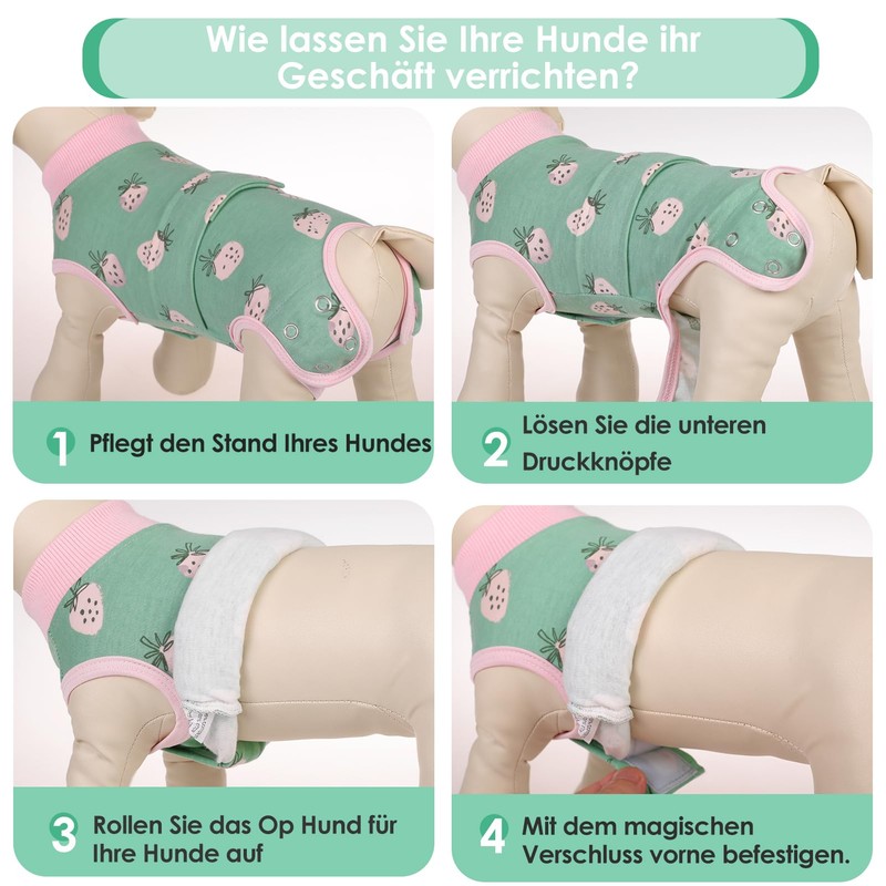 AOFITEE Dog Bodysuit After Op, Dog Bodysuit After Surgery , Cosy Surgical Body Dog, Dog Bodysuit After Castration Male, Leak Protection Dog with Pee Hole for Abdominal Wounds, Strawberry S