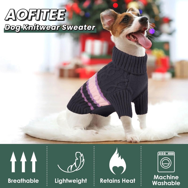 AOFITEE Pet Sweater For Dogs & Cats, Dog Sweaters for Small Medium Dogs, Cable Knitted Wear Kitten Puppy Sweater