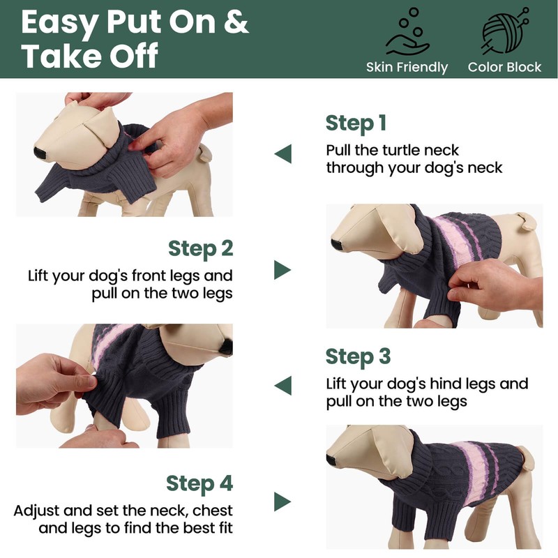 • 【Elasticized Ribbed Cuffs & Hem】With cozy and comfortable cuffs & hem, the puppy sweater provide a secure and snug fit while also make it easier to slide the sweater on or off, warm for Dogs Wearing in Cold Winter or Autumn.
