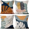 Aoihrraan 41 x 41 cm, Set of 4 Decorative Boho Cushion Covers, Botanical Plant, Natural Leaf, Boho Square Sofa Cushion, Decorative Cushion Made of Linen, Home Decor for Farmhouse, Living Room,