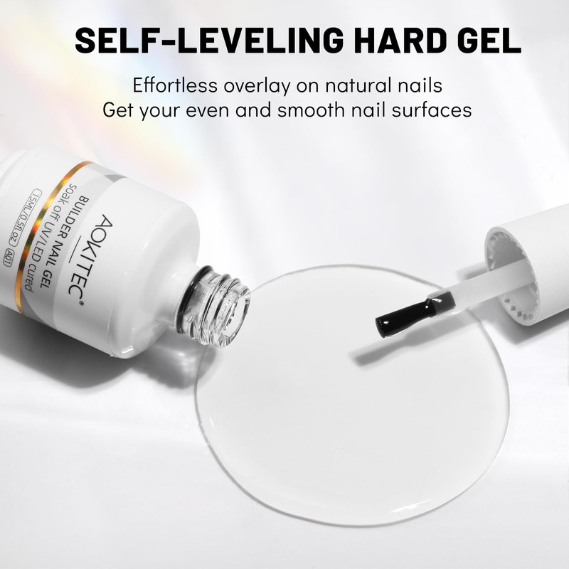 - 🧸 Quick Build Apex & Extend Nails - Aokitec builder nail gel are all made with healthy resin and non-toxic material, vegan and no harm to nails. Adopt a superior self-leveling formula with a built-in brush, making it easy to apply and spread. Easily help you create extension nails or build perfect apex, perfect for nail art starters.