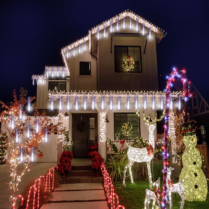 - 【Unique Christmas Decoration Effects】These icicle Christmas lights outdoor each beads fall in sequence then have a slight delay on each tube, just like meteor shower or falling snow across the night sky, which shows a super beautiful display. If you buy more than one set and hang them down in a circle around the eaves, the effect is spectacular