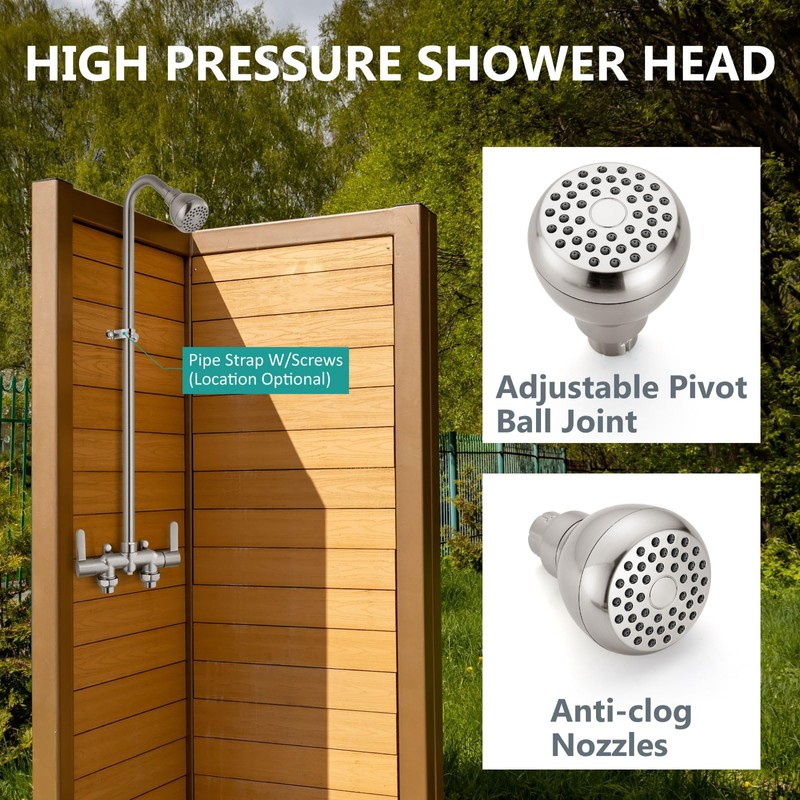 • Rotatable Showerhead:This outdoor shower comes with a high performance shower head and 2-handle design for water temperature control.Never worry about the Spray performance ,even under low water pressure