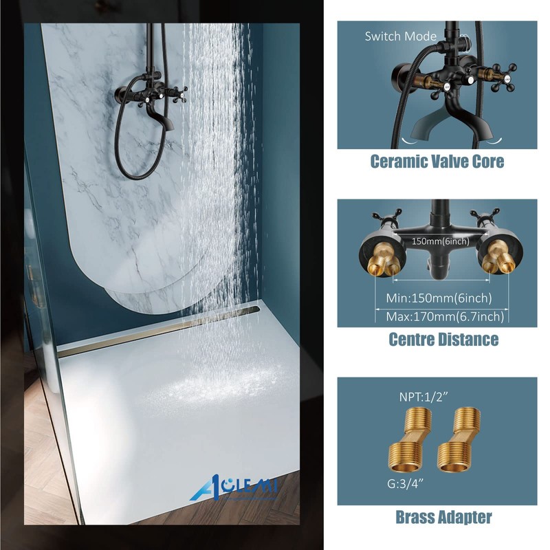 Installation:Black oil Rubbed Bronze wall mounted shower faucet, 2 holes installation,hole center distance: 150mm,Ship with adjustable adapter to adjust installation hole distance between 5 inch - 6.6 inch (13cm-17cm).
