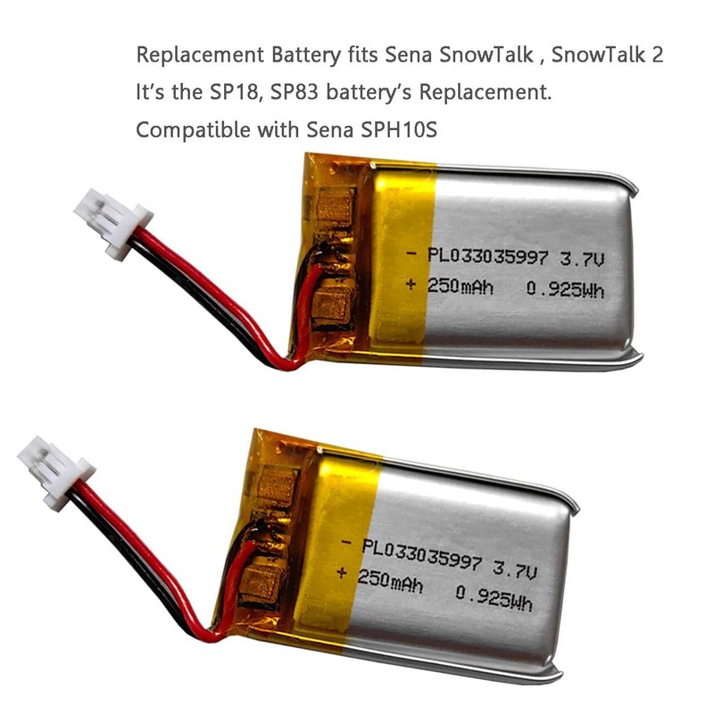 • The 3.7v Lithium polymer battery complies with Sena SnowTalk 2 bluetooth headset, fits Sena Snowtalk 2 battery replacement.