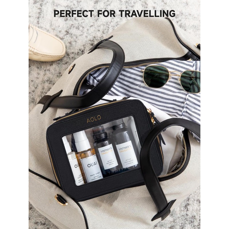 AOLO Clear Makeup Bag Organizer - Large Make up Pouch Bags for Travel, Clear Cosmetic Bag with Zipper, Big Transparent Skincare Toiletry Case for Women Traveling Essentials (Black, L)