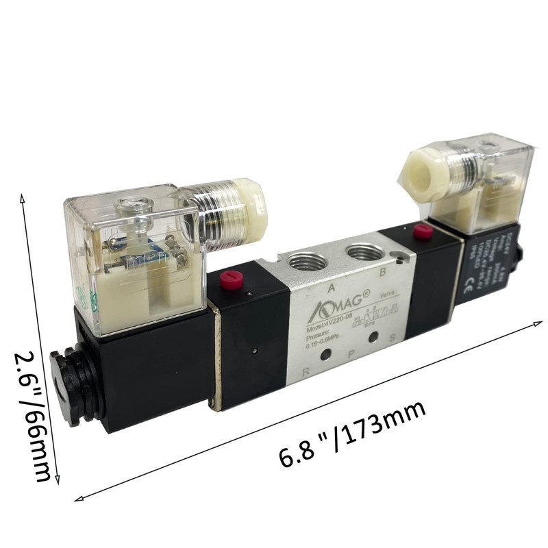 AOMAG Pneumatic Solenoid Valve 4V220-08 DC12V 1/4" PT Double Coil Pilot-Operated Electric 2 Position 5 Way Connection Type