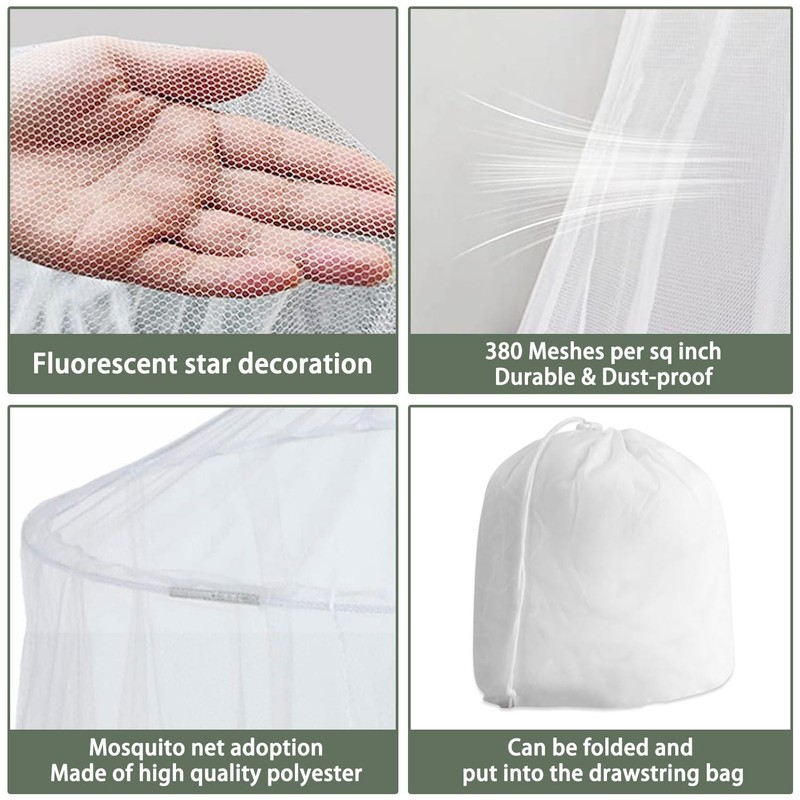 - Anti-mosquito protection: mosquito net bed canopy has good breathability and protective properties. The bed mosquito net is made of high-density gauze net, which can effectively filter mosquitoes and bugs while being breathable, so you can enjoy fresh air while avoiding annoying mosquito bites.