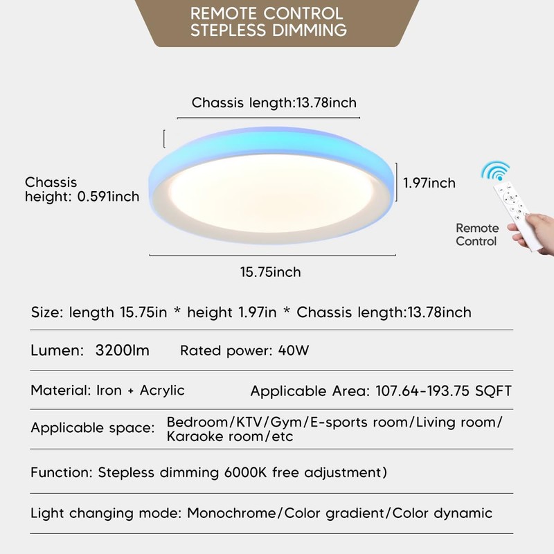 - 【Easy Installation & Space-Optimized】Pre-assembled design fits standard junction boxes; 15.75-inch diameter and 1.97-inch slim profile ideal for 100-180 sq ft rooms; includes mounting hardware and step-by-step guide.