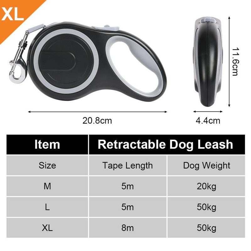 • Retractable dog lead: comes with a durable, strong and sturdy nylon strap that can be extended to 5 metres, 8 metres. The widths are 1 cm, 1.3 cm and 1.5 cm. This dog leash provides the ultimate walking experience with excellent control and safety, perfect for everyday use. Whether it's a daily walk or a long hike, by choosing the right size, you can make your dog's walks more comfortable and enjoyable.