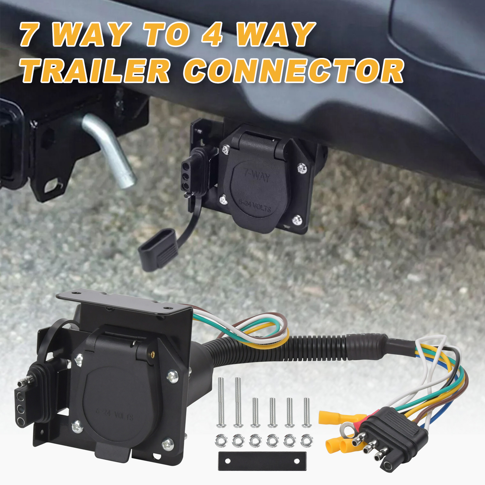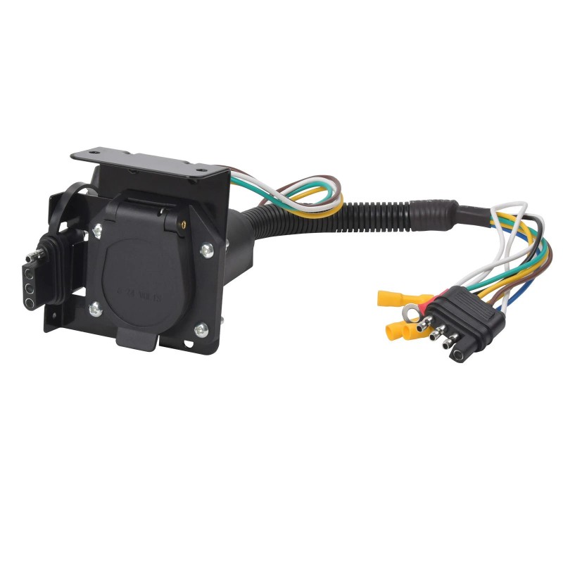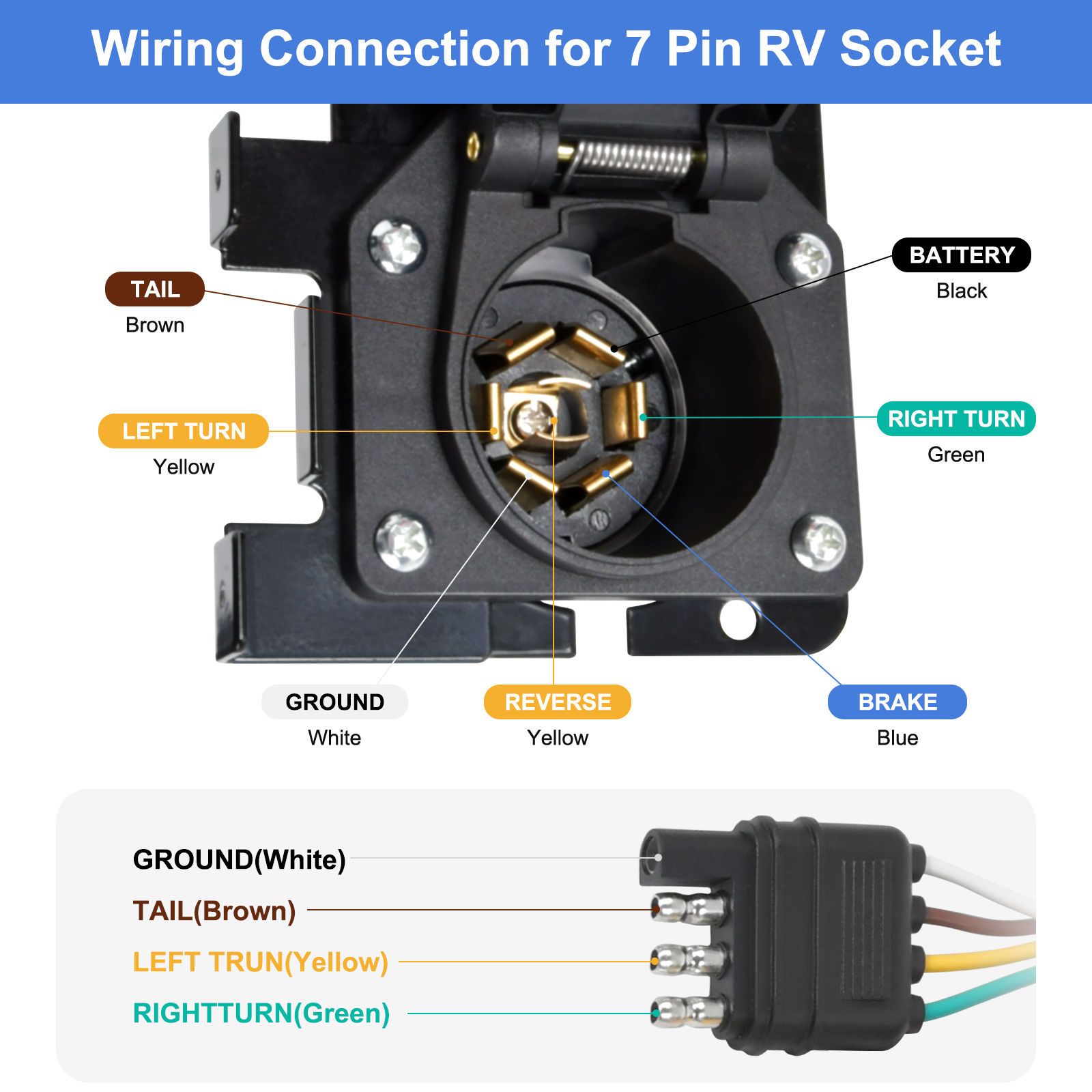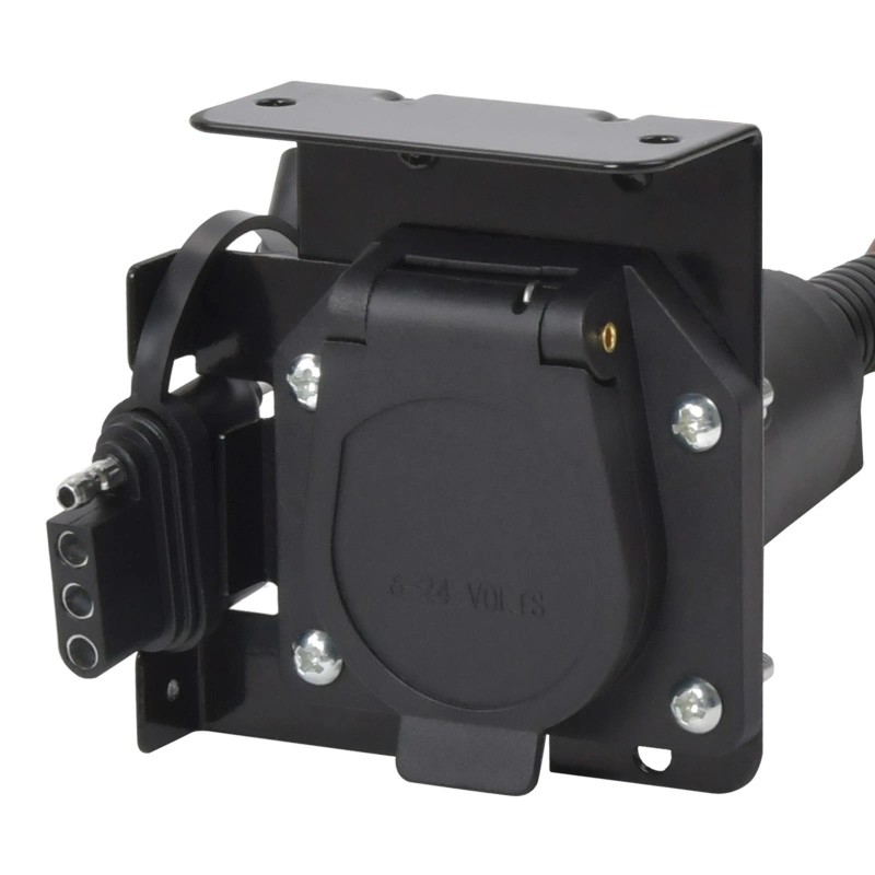 - Heavy Duty: 7-way RV and 4-way flat trailer electrical adapter equip with dust cover and spring loaded cover to keep terminals clean; Made of reinforced thick plastic; Trailer socket sealed with silicone and internal seal for ultimate weatherproofing.