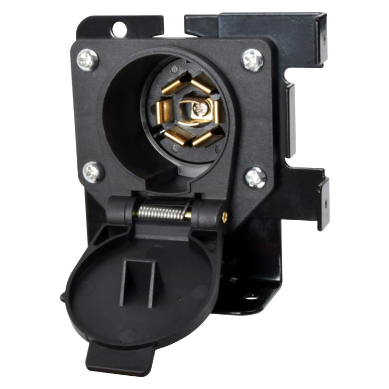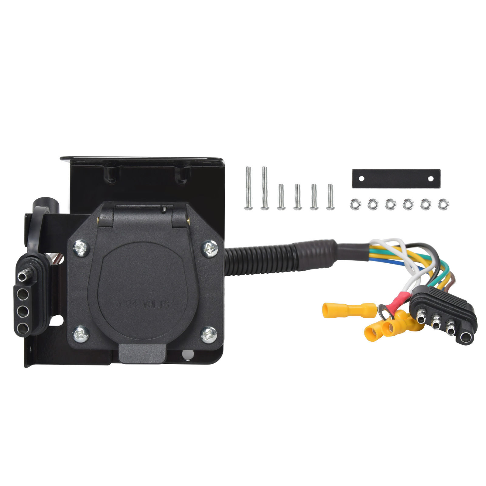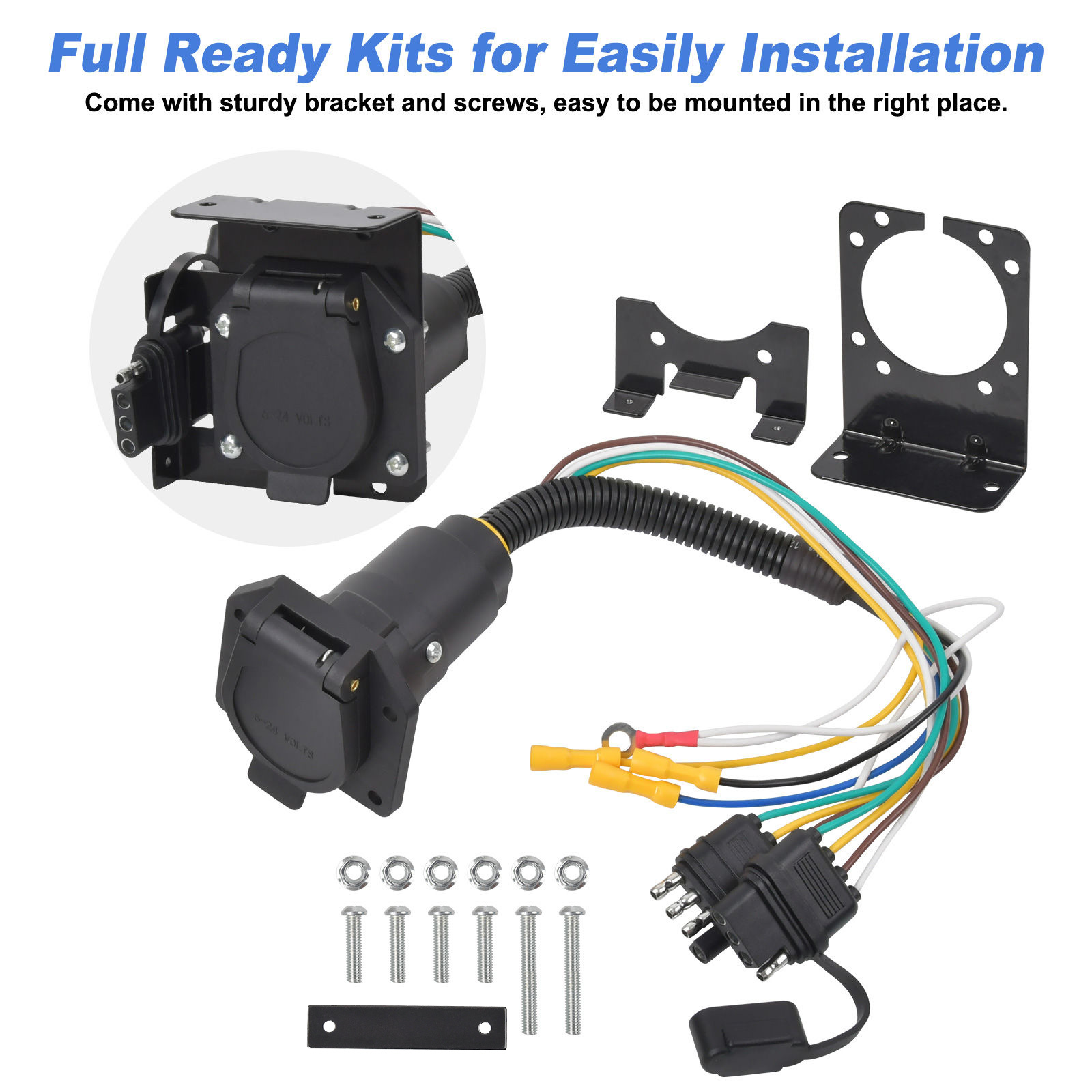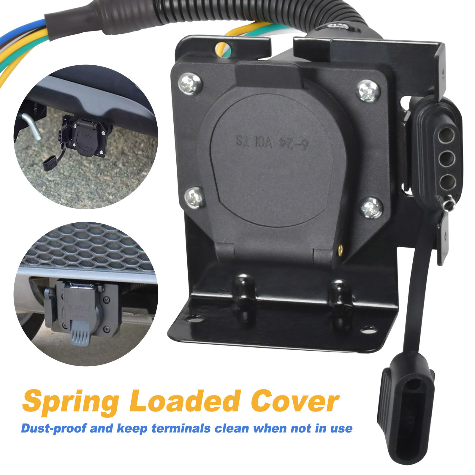 - Heavy Duty: 7-way RV and 4-way flat trailer electrical adapter equip with dust cover and spring loaded cover to keep terminals clean; Made of reinforced thick plastic; Trailer socket sealed with silicone and internal seal for ultimate weatherproofing.