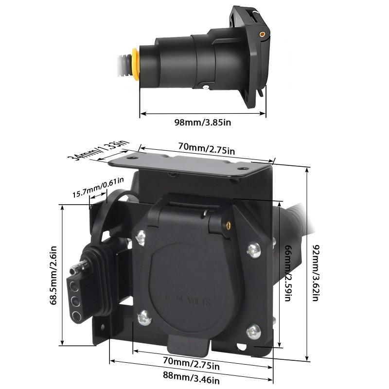 - Socket Type: Flat 4 Pin & Round 7 Pin