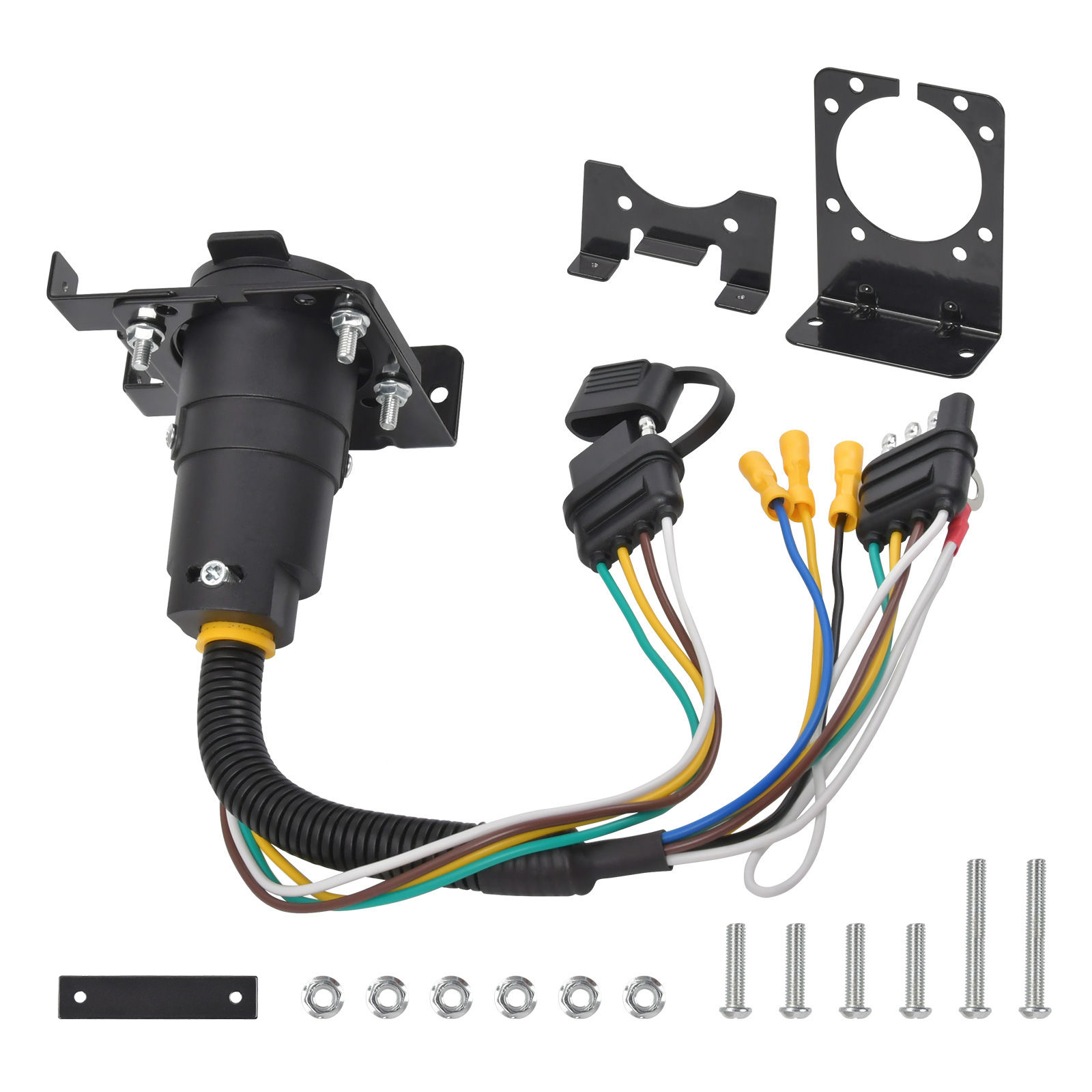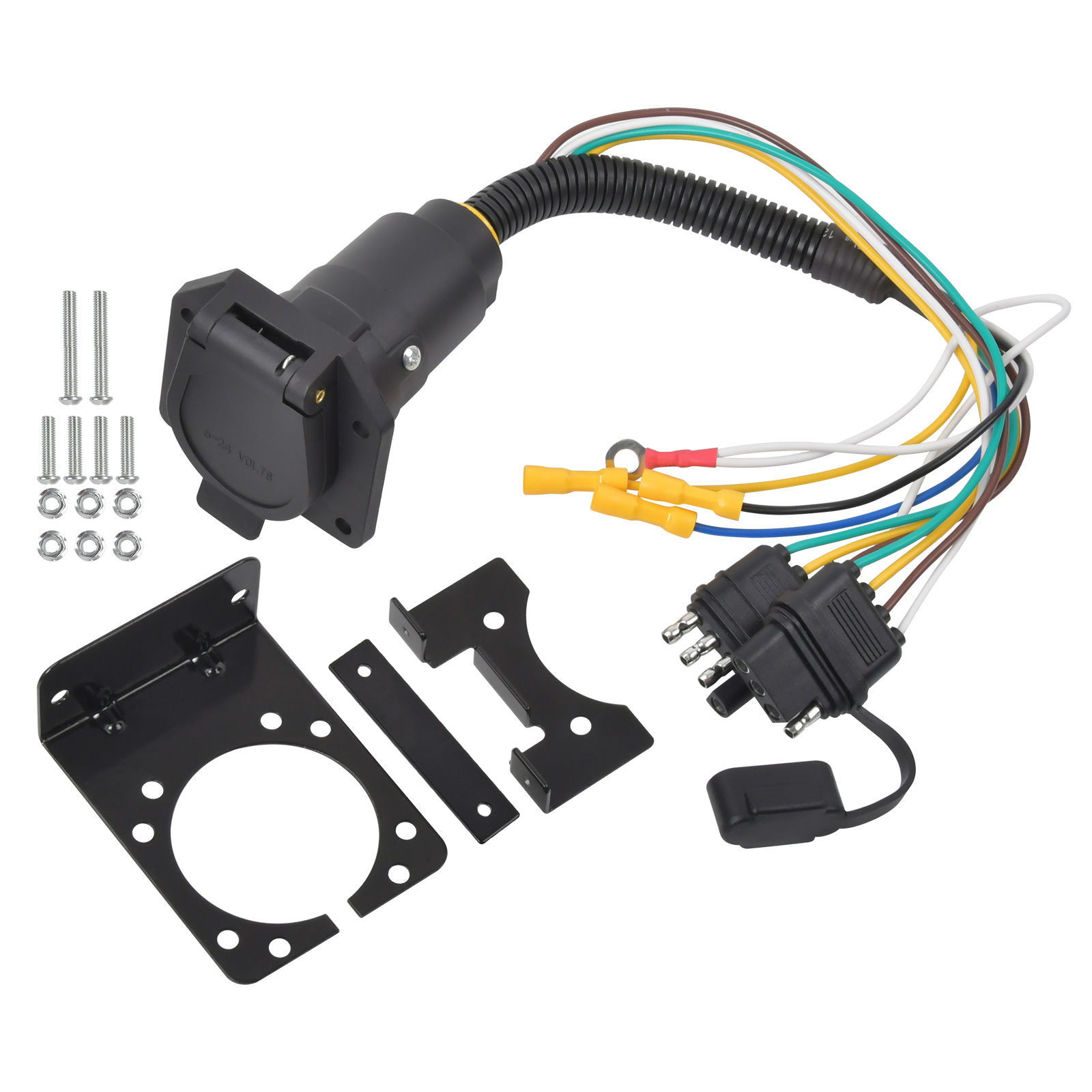 AOMINOHOMA 4 Pin Flat to 7 Way RV Trailer Truck Adapter Wiring Plug with Mounting Bracket