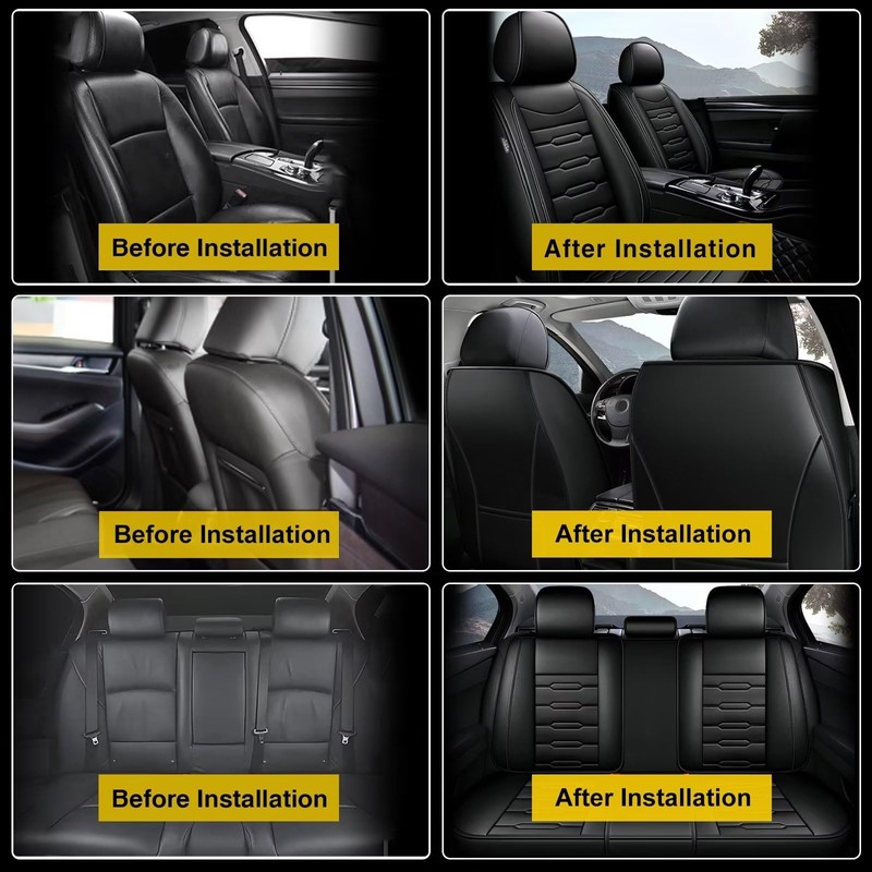 - ✅【Faux Leather Seat Cover】High-quality faux leather durable, comfortable and waterproof, made of artificial leather, high elastic sponge, heat-pressed non-woven fabric and non-slip base fabric, not tiring to sit for a long time.