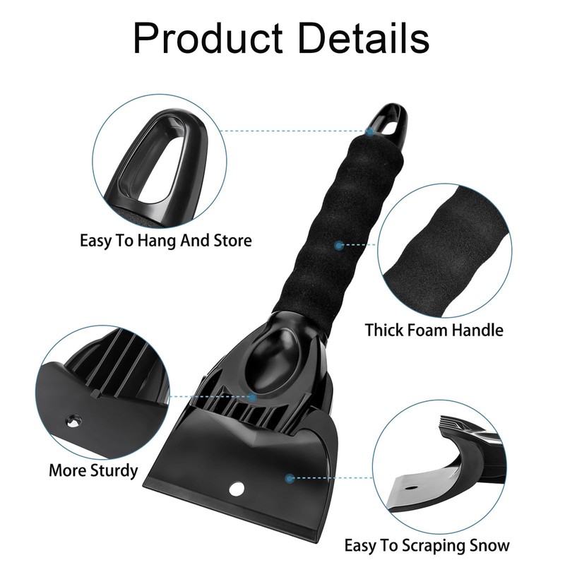 This 2 pack windshield scraper efficiently and conveniently removes ice or snow from your car without leaving scratches or damage.