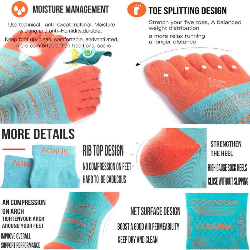 - 【Breathable Material】70% Coolmax, 27% Nylon, 3% Lycra, five toe socks with moisture wicking, Keep your feet cool and dry.
