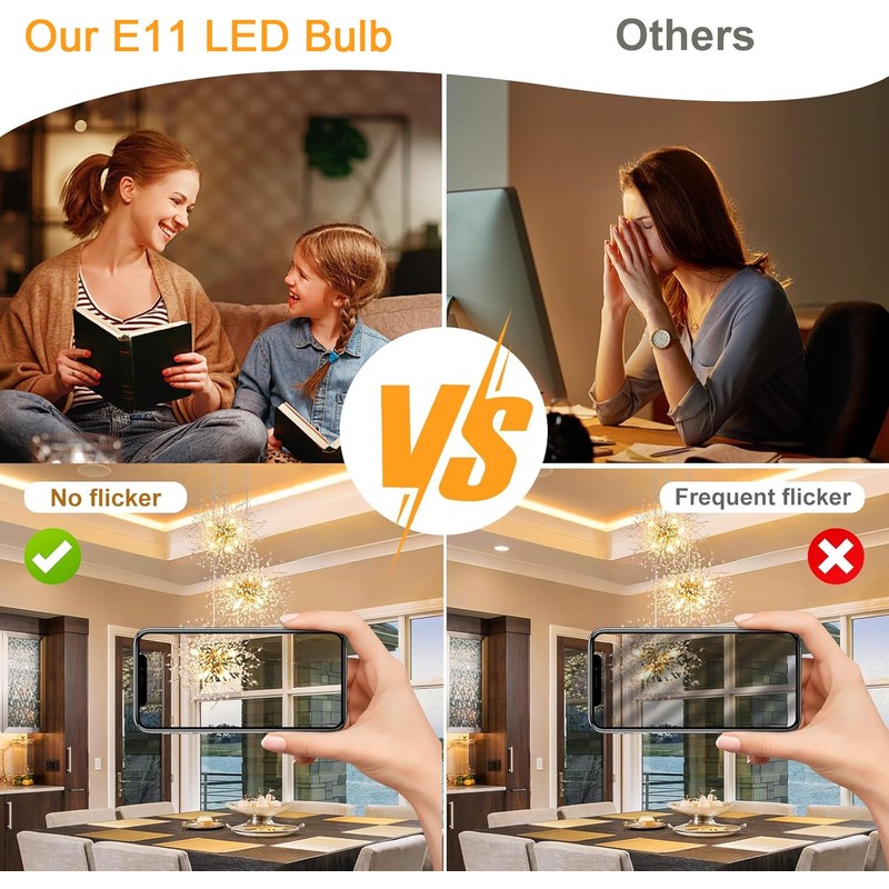 - 【Easy Installation】Fits for any indoor household use with E11 Mini Candelabra base in Ceiling Fans, Chandeliers, Track Lighting, Table/Desk/Floor Lamps, Recessed Lights, Cabinet Lighting, Wall Sconces and fixtures of any suitable style. Good replacement for E11 halogen Bulbs. (Not E12 Candelabra base)