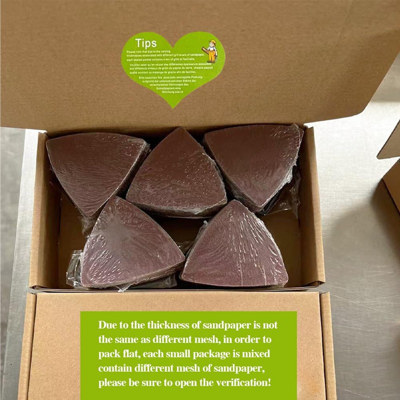 - Includes all common abrasive grits] Triangle sandpaper 80mm: 40#×10,60#80#100#120#240 ×15,240#×10. Finger sandpaper: 40#×10,60#80#100#120#240 ×15,240#×10, Mixed sandpaper allows you to go from coarse to fine for a thorough surface finish. Whether you're decorating a room, working in woodworking, or sanding and polishing rusty old items, this is an excellent choice.