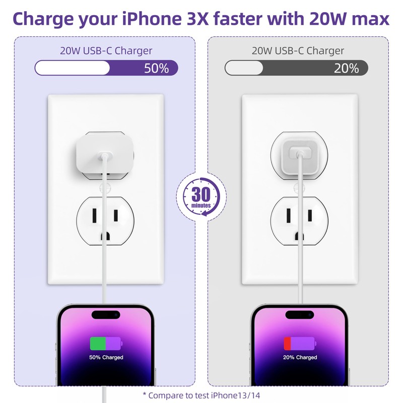 • (1)Usb C Charger Block supports PD2.0, PD3.0, QC2.0, QC3.0, QC4+, PPS, AFC, FCP protocols and is compatible with iPhone 16/16 Pro/16 Pro Max/iPhone 15, iPad Pro, Air 5/4, iPad 10/Mini 6/Samsung Galaxy S23 Ultra/S23+/S22/S21/S20/all mobile phones. Usbc charger block Charging current maximum 3A, maximum voltage 12V, automatic maximum efficiency charging, power 20W3x faster than the original 5 watt iPhone charger.