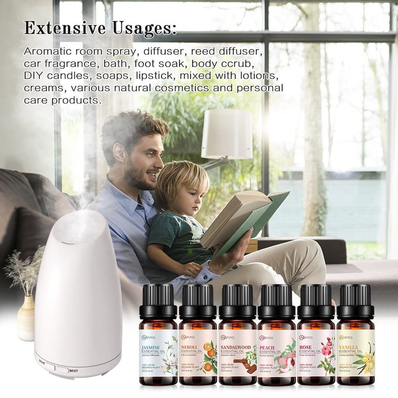 • Premium Grade Oil: AOPING essential oils are distilled from the flowers, leaves, branches, roots, beans, resin of natural plants. These are 100% pure and natural, without dilution and addition, therapeutic grade quality. It has through multiple rounds testing and get SGS/MSDS approved.