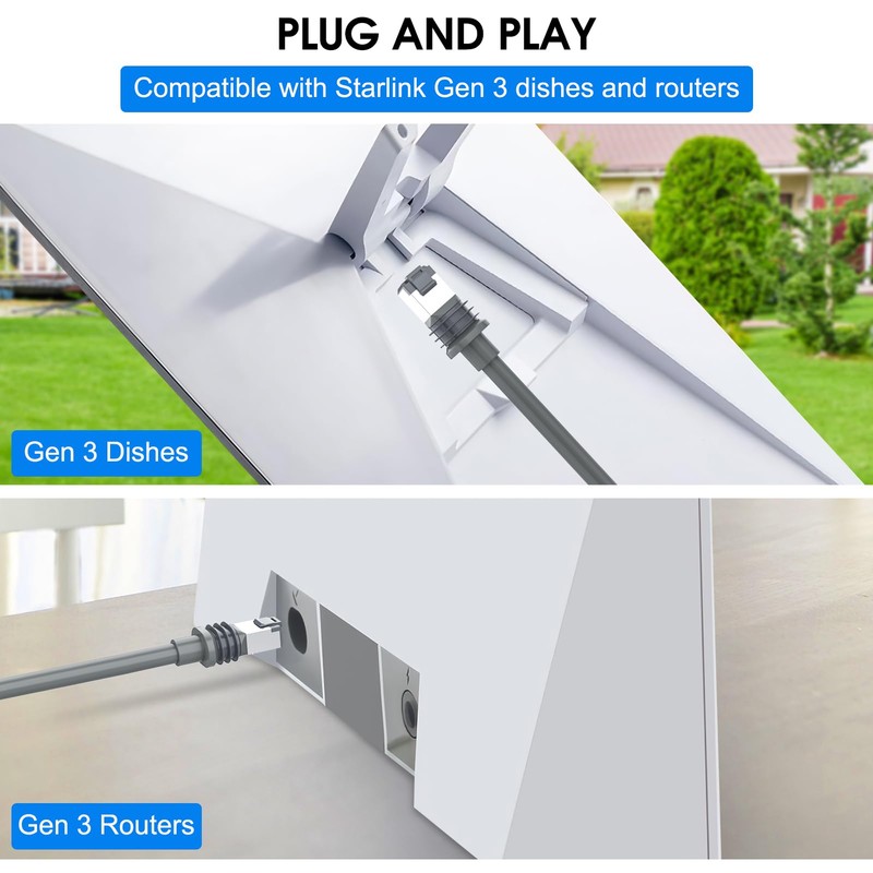 - Original Standard Starlink Gen 3 Cable: Our Starlink Gen 3 cables are manufactured to the original standard, Starlink cables are designed for use with the Starlink Gen 3 Rectangular Satellite System and are compatible with Starlink Gen 3 accessories for stable and reliable connectivity in homes, RV and other satellite networks.