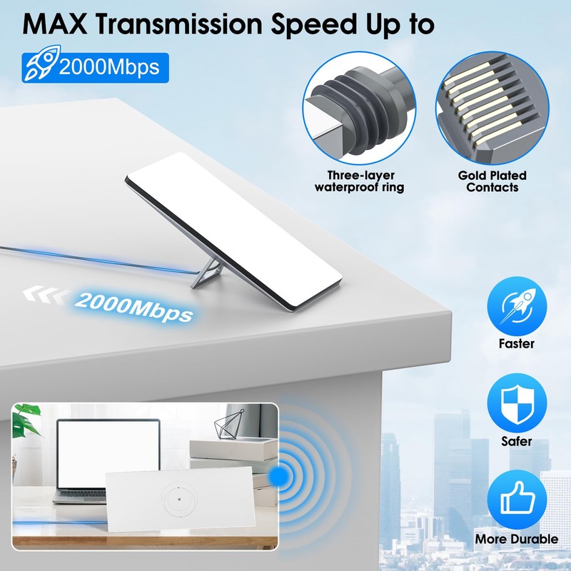 - High-speed Transmission & Shielded Anti-interference : AOPOCKAN TECH Starlink Cable 75FT supports high-speed data transmission with a bandwidth of up to 2000 Mpbs for smooth data transmission and delay-free streaming media playback. The shielded starlink rectangular satellite cable minimizes signal interference.