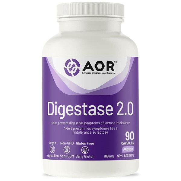 AOR - Digestase 2.0-90 Capsules - Helps Prevent Digestive Symptoms of Lactose Intolerance