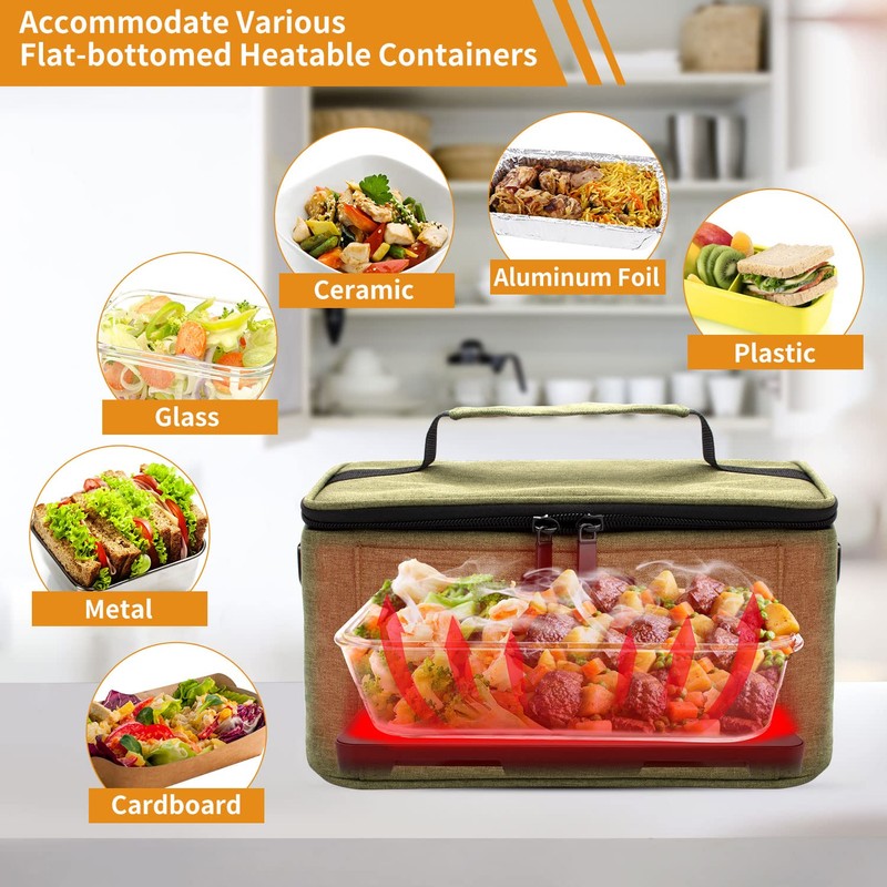 - ✅ Sin dudas por compatibilidad: esta lonchera térmica para coche es compatible con la mayoría de recipientes de fondo plano resistentes al calor con tapas sellables, vidrio, plástico, papel de aluminio, acero inoxidable, cartón y mucho más. Este mini horno de microondas portátil es adecuado para cocinar desde cero, comidas reenvasadas, y puede acomodar recipientes grandes de hasta 9.8 pulgadas de largo x 7 pulgadas de ancho x 3.9 pulgadas de alto. Fácil de usar, ya que no hay botón o temporizador, no te preocupes por atornillar una comida.