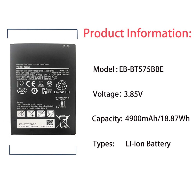 - 1??kompatibel mit?? Modell des Produkts: EB-BT575BBE ;Batteriewechsel-Kit Nur kompatibel mit Galaxy Tab Active 3 Battery SM-T570, T575 GH43-05039A . Bitte 1berpr1fen Sie vor dem Kauf die Modellnummer auf der R1ckseite des Telefons oder in den Telefoneinstellungen.