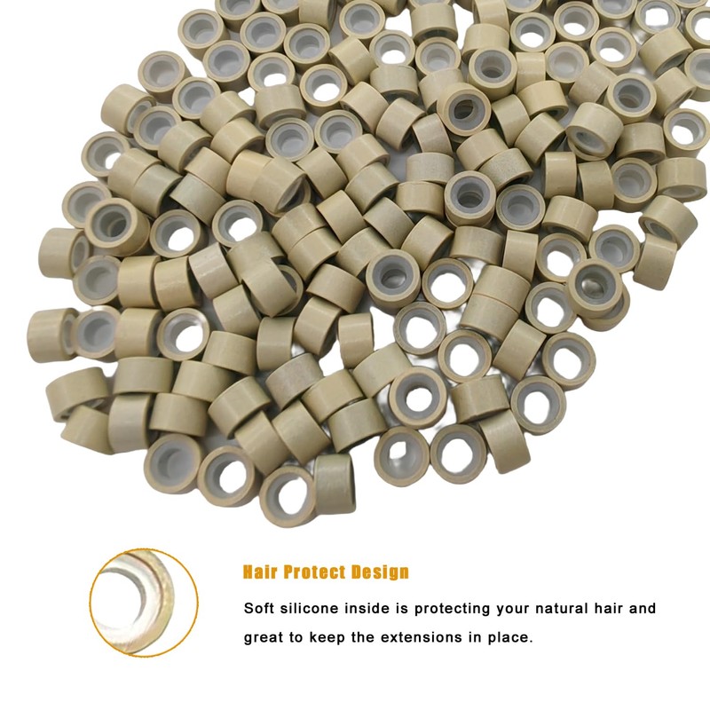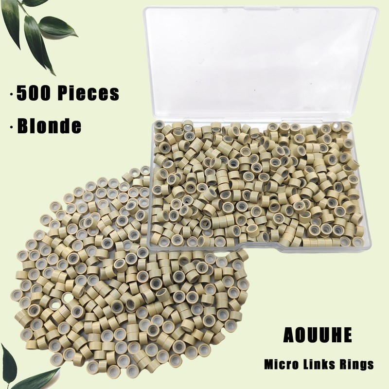 Aouuhe 500 Pcs Micro Link Rings Beads for Hair Extensions 5mm Silicone Lined Beads Microlinks Hair Extensions Tool (Blonde, 5mm 500Pcs)