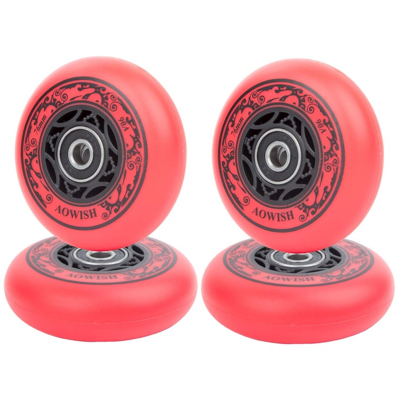 AOWISH 4-Pack Inline Skate Wheels Outdoor Asphalt Formula 90A Aggressive Blades Roller Skates Replacement Wheels with Speed Bearings ABEC 9 and Spacers (Red, 76mm)