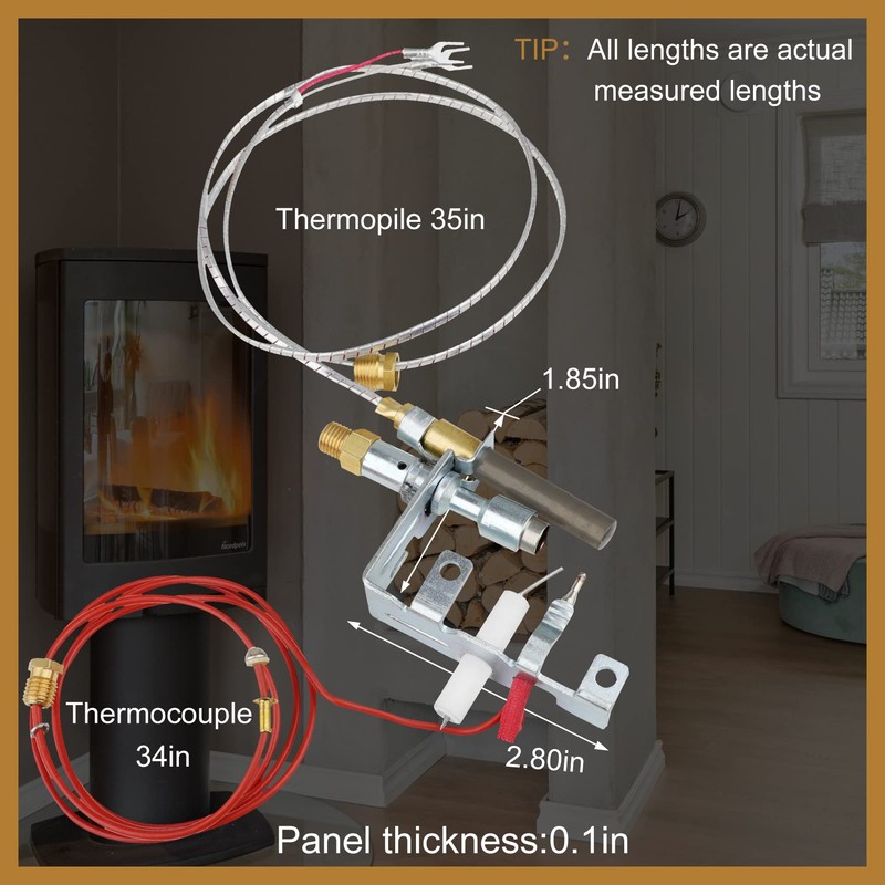 • 【Components Include】14D0473 parts for a gas fireplace consists of 750mv thermoelectric reactor, pilot burner (0.22 built-in fuel injector, energy consumption approx 166W), end gas connection with 3/8-24 UNF thread. Ceramic igniter electrode ignition. 34 "long integrated thermocouple with M8 x 1 head connection nut for LP propane gas grade