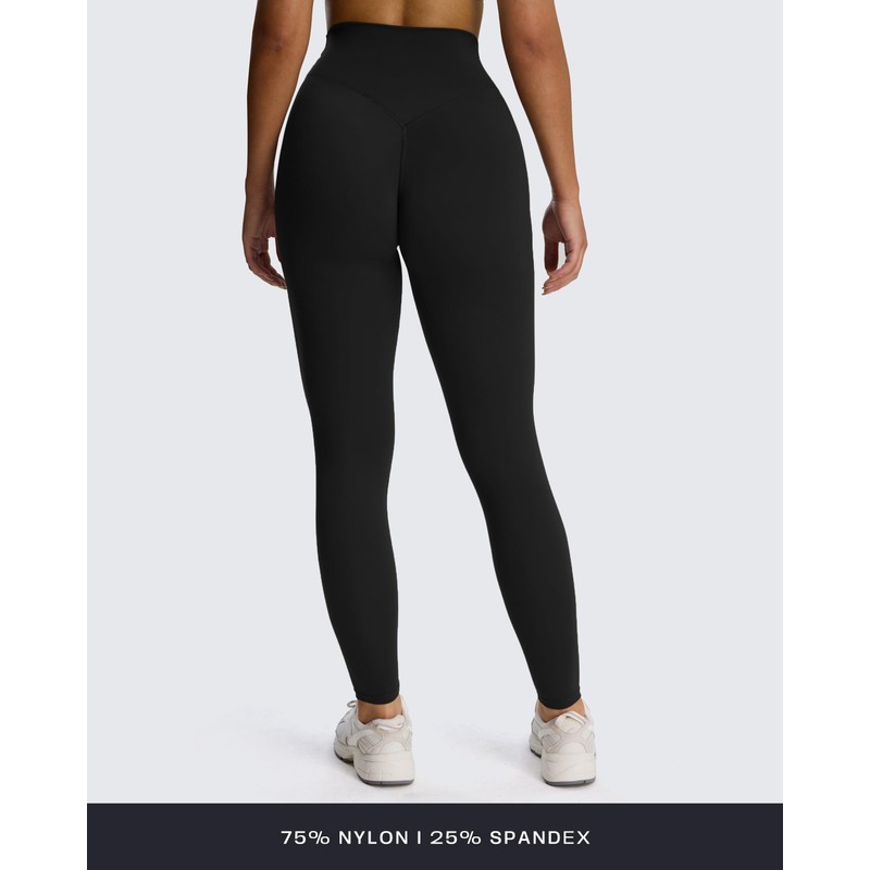Aoxjox High Waisted Workout Leggings for Women Hidden Scrunch V Waist Front Illusion Ruched Athletic Yoga Pants 26" (Black, Small)