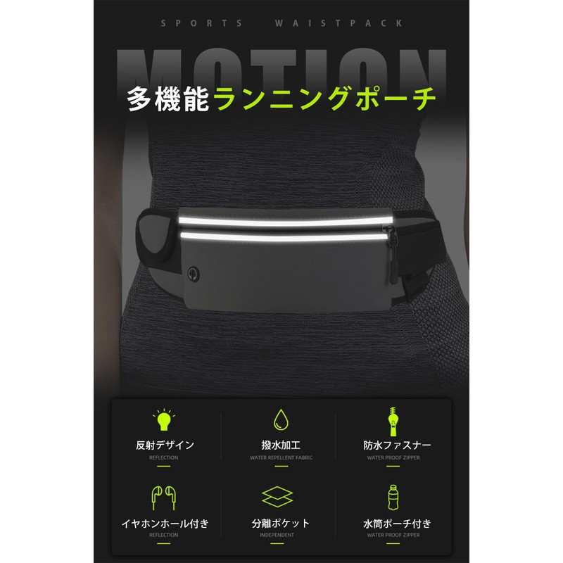 AOY Running Pouch, Non-Shaking, Waterproof, Sweat-proof: Waist Pouch, Water Bottle Pouch, Adjustable Belt, Earphone Hole, Large Capacity, Lightweight, Smartphone Compatible, Night Activities, Waist
