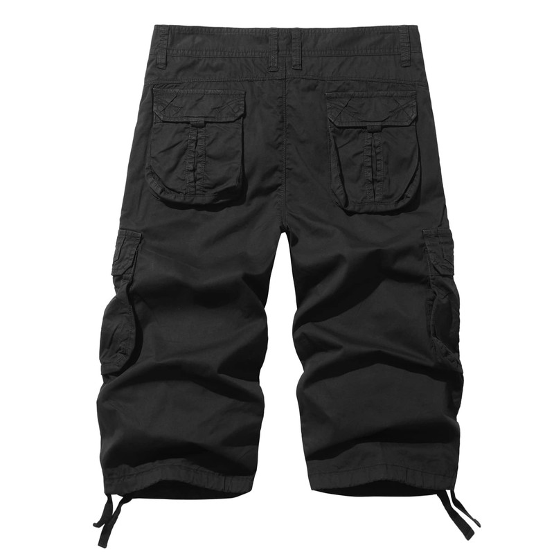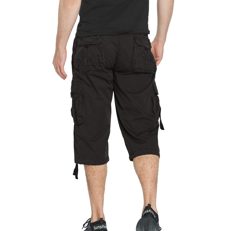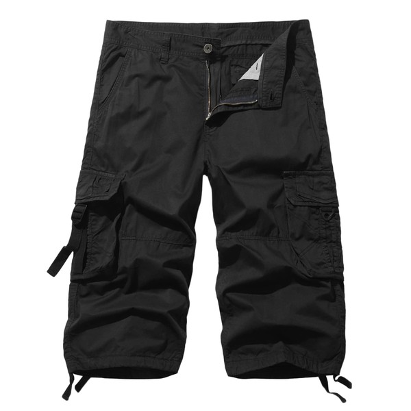AOYOG Men's Cargo Shorts 3/4 Cotton Relaxed Fit Below Knee Capri Cargo Pants Black