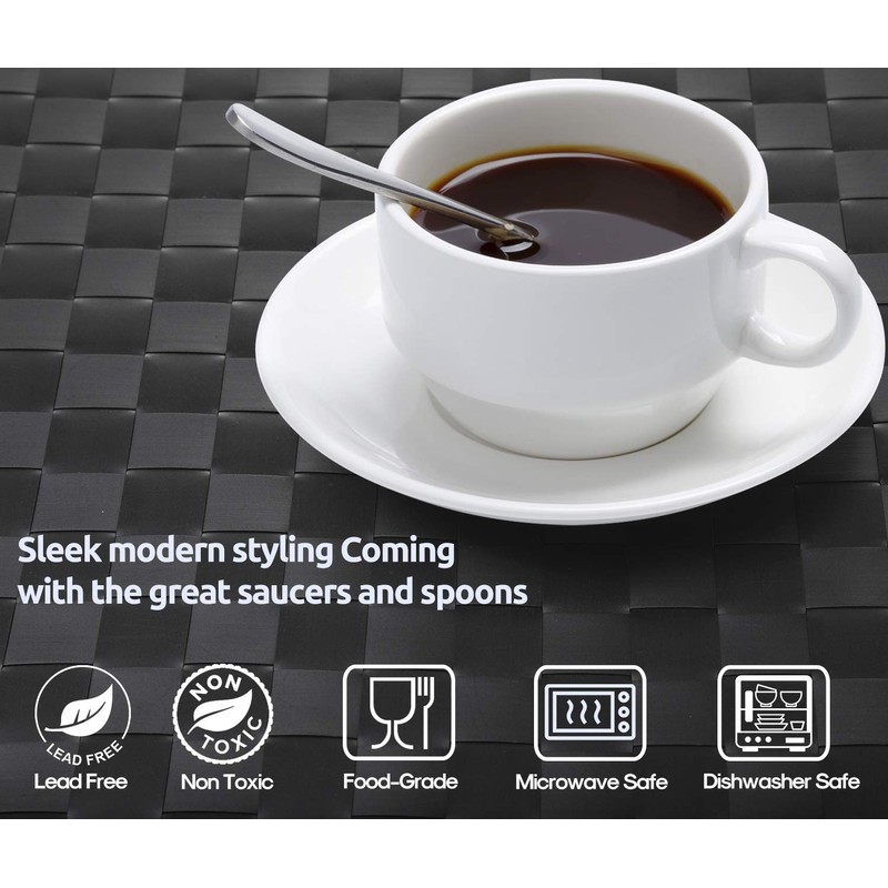 - Each espresso cup measures at 2.7" in diameter and 1.8" in height, saucer plates measure at 4" in diameter, 4'' stainless steel espresso spoons, perfect size for tasting a double or single shot of espresso