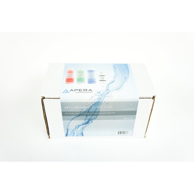 Apera Instruments pH Calibration Buffer Solution Kit (pH 4.00, 7.00 & 10.01, 8 oz. each), plus 4 oz. 3M KCL Soaking Storage Solution. Apera pH calibration buffers are produced in an ISO 9001:2015 facility with ISO 17025:2017 accreditation using high-purity reagents, deionized water and certified analytical balances in a temperature controlled environment. Reported values are accurate to +/- 0.01 pH at 25C and are traceable to NIST Standard Reference Materials (SRMs). MSDS documents are downloadable. Certificate of analysis can be achieved by request. All pH buffers have a 2-year expiration from manufacture for an unopened bottle.