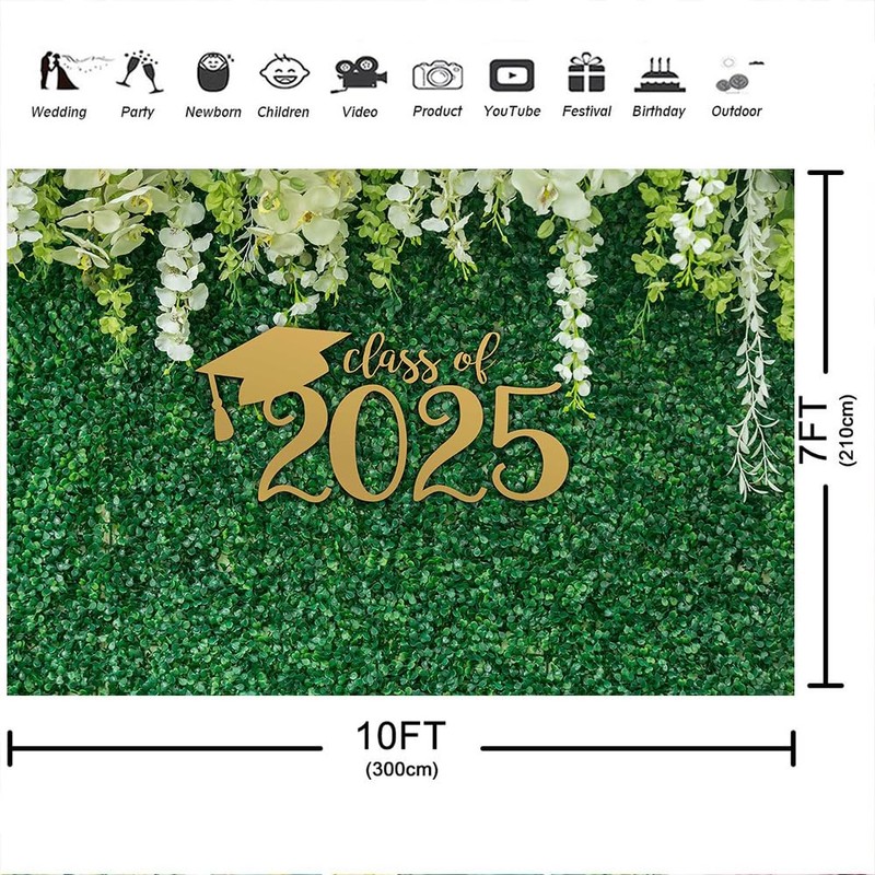 Aperturee Class of 2025 Graduation Photography Backdrop 10x7ft Green Leaves Wall Prom Congrats Grad Bachelor Cap Spring Still Life Grass Leaf Background Party Decorations Photo Studio Booth Banner