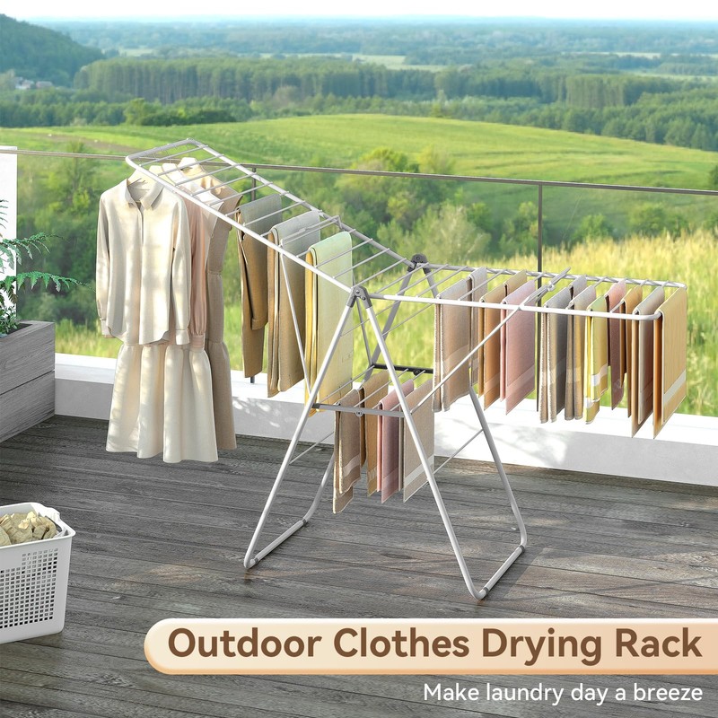 - [Suitable for Indoor & Outdoor Use] Made from durable yet lightweight materials, this collapsible clothes drying rack is easy to move, perfect for indoor laundry room or outdoor space.