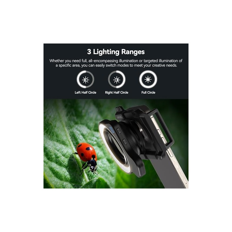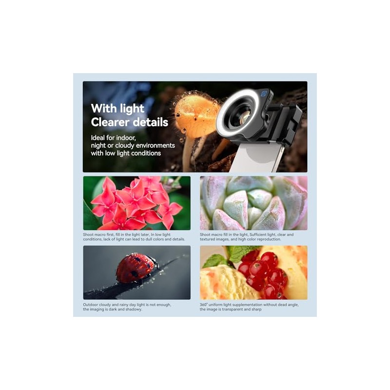 APEXEL APEXEL 10-20X Macro Lens for iPhone & Android Phones | HD Photography Lens Kit with Universal Clip & 45-Mode Fill Light | Capture Still Life Close-Ups, Insects, Plants, Jewelry, Food & Small Objects