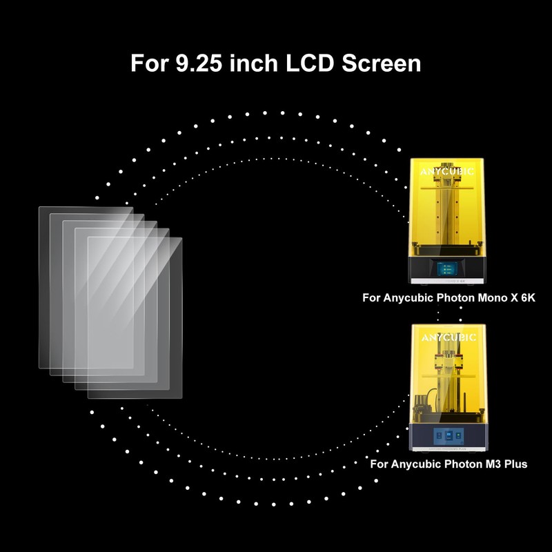 - Screen protector compatible with Anycubic Photon Mono X 6K, M3 Plus 9.25 inch Protective Film can just cover the LCD screen of the 9.25 inch 3D printers, to prevent resin from contaminating the screen when FEP film damaged when add or recycl resin,so can prolong the use time of the LCD screen and save the cost of replacing screen