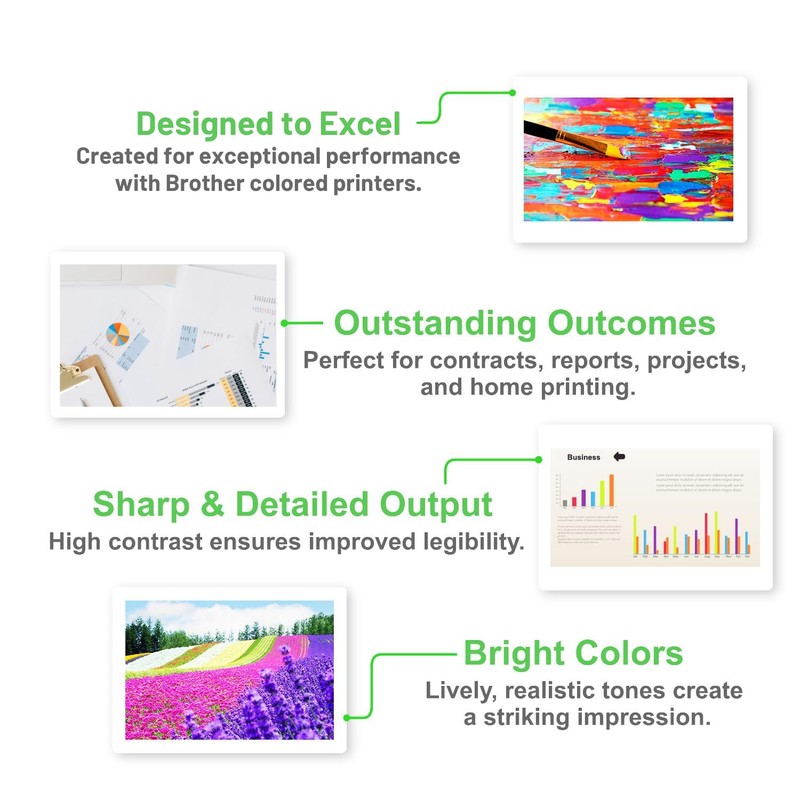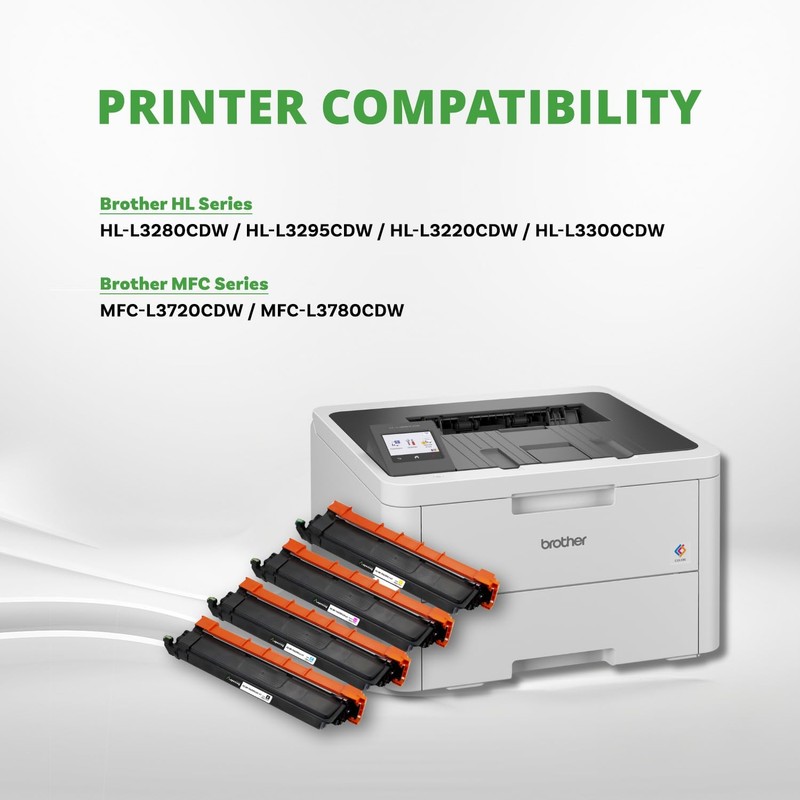- 🎨 Perfect Compatibility Across Devices: Seamlessly integrates with Brother printers such as HL-L3220CDW, HL-L3280CDW, MFC-L3765CDW, and others. Each cartridge undergoes rigorous testing to ensure flawless compatibility and outstanding performance
