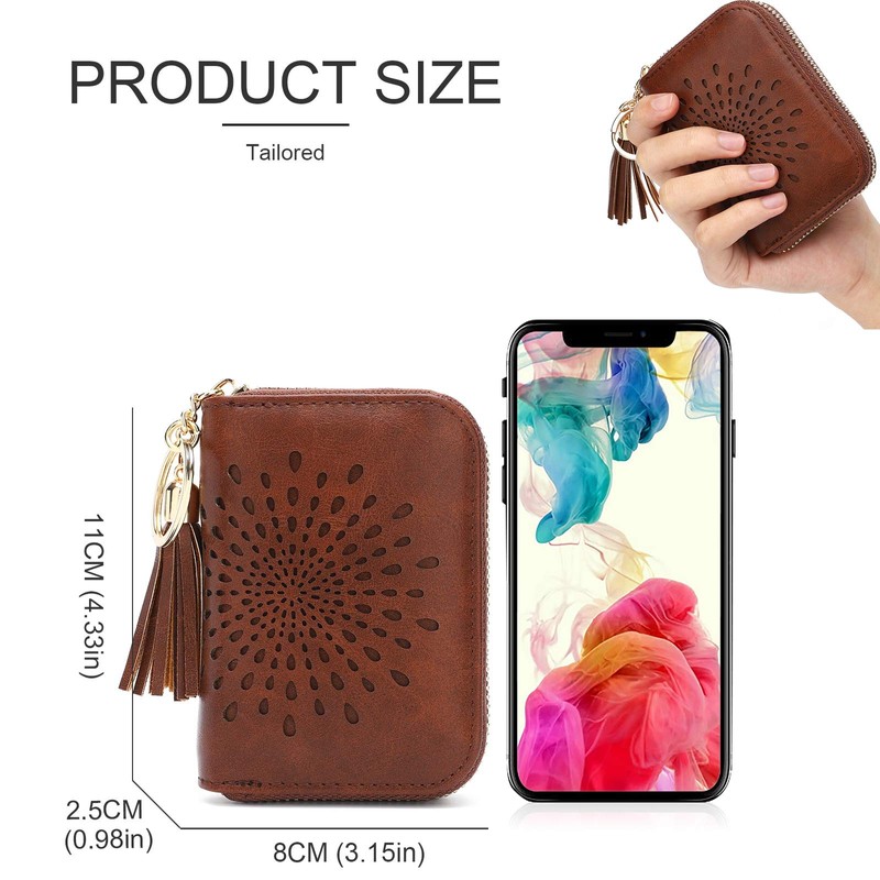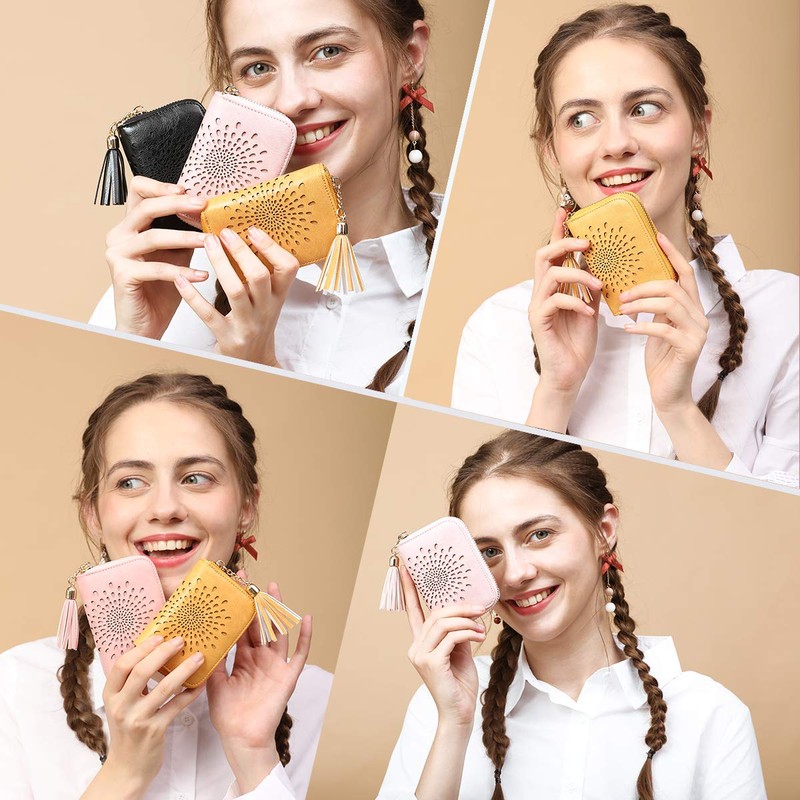 - 【Stylish & High quality Credit Card Holder】This zipper card holder is Made of Soft PU leather. animal-friendly,Glossy and More tear-resistant. Unique Hollow out sunflower design, Elegant, fit for Work,travel, dating, shopping, etc.